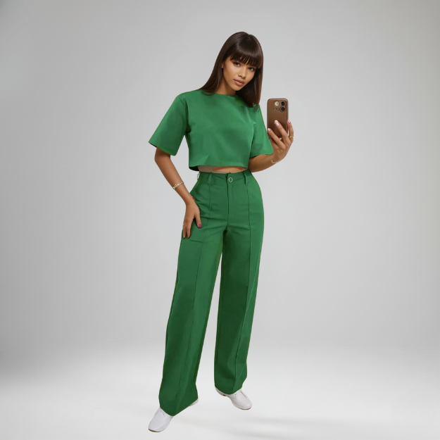 The Vienna Power Set is the perfect combination of minimalism and bold sophistication. Designed with clean lines and a tailored silhouette, this two-piece set features a structured crop top and high-waisted wide-leg trousers, creating a polished yet effortless look. Ideal for power dressing, statement street style, or elegant casual wear, this set makes an impact wherever you go.