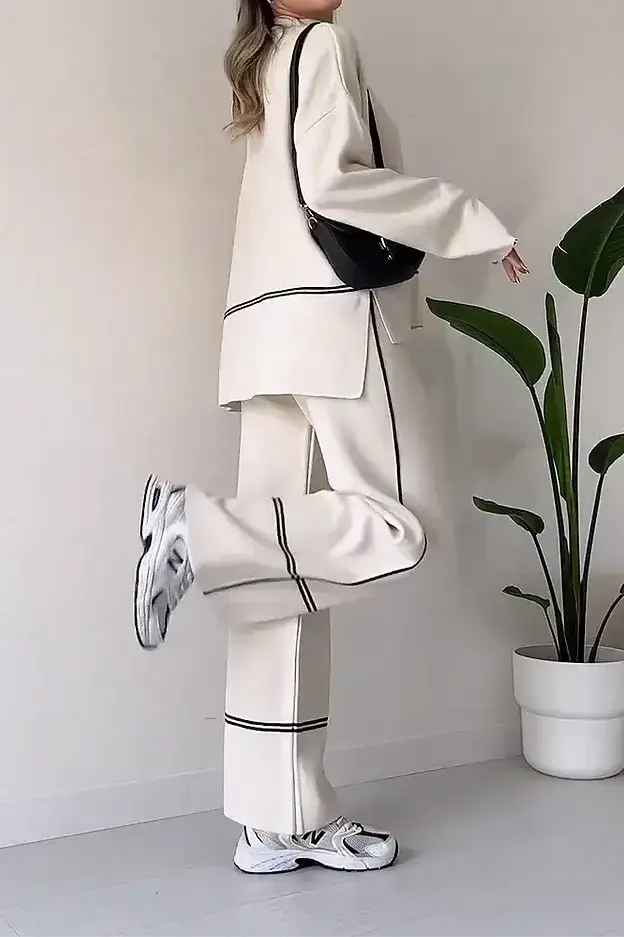 The Soho Relaxed Set is designed for those who love understated elegance with a modern twist. Featuring a boxy high-neck top with contrast piping and wide-leg pants, this two-piece set combines relaxed comfort with contemporary sophistication. Whether for casual days, travel, or stylish lounging, this set is the perfect blend of fashion and function.