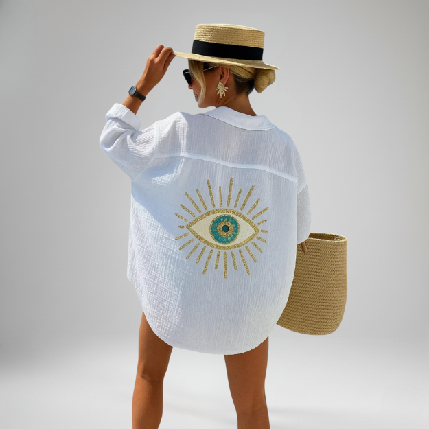 Discover effortless sophistication with CLEOPATRA, a blouse that blends timeless design with subtle statement details. Its flowing silhouette and elegant finish make it ideal for women who want refined ease without sacrificing comfort. From relaxed afternoons to elegant evenings, it adds a touch of understated glamour to any look.
